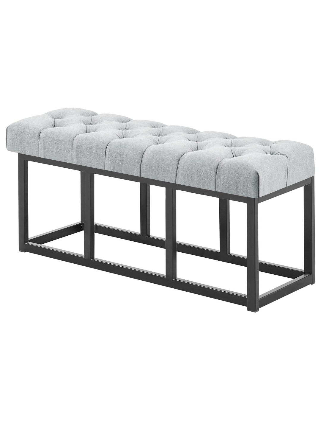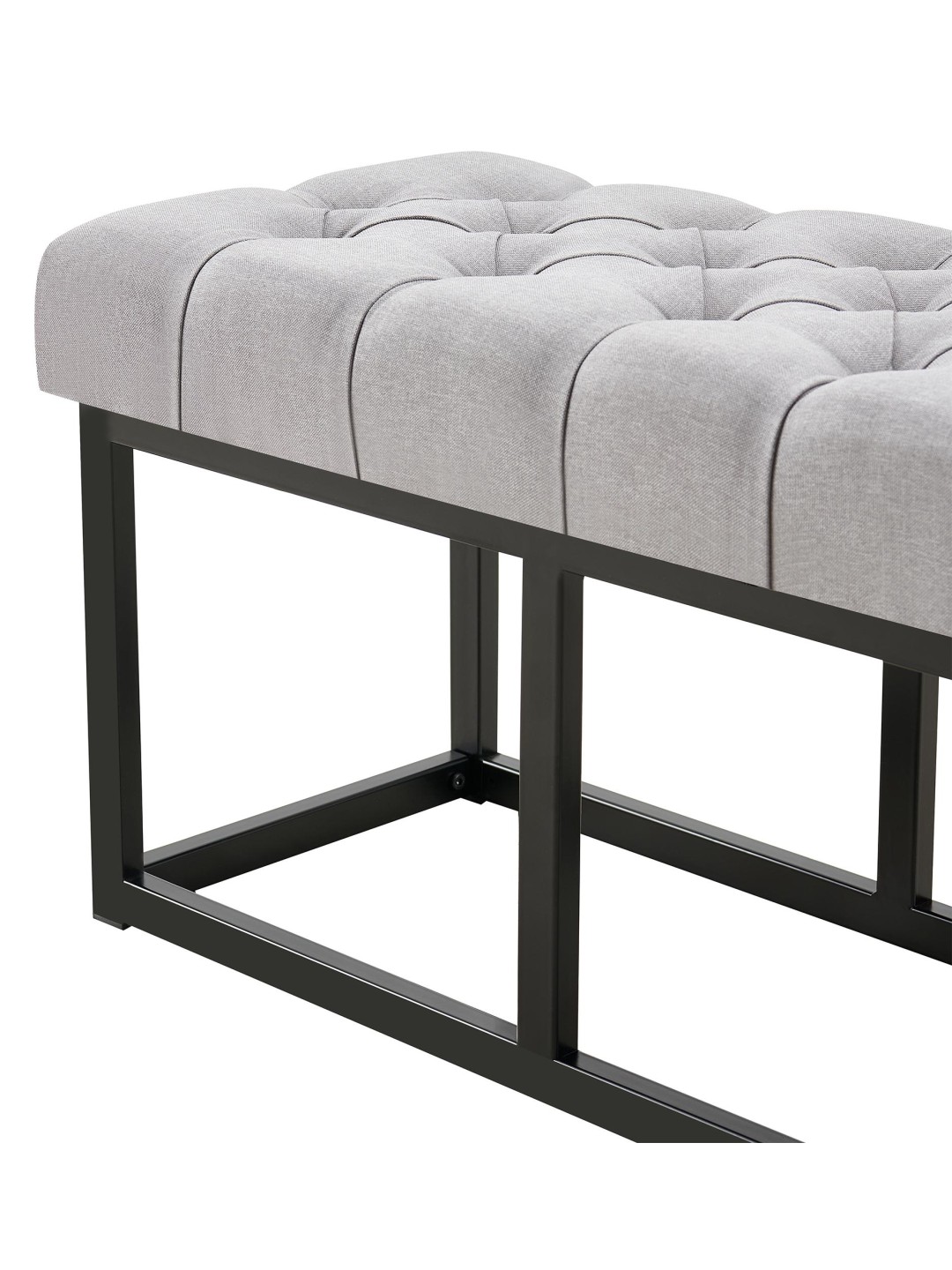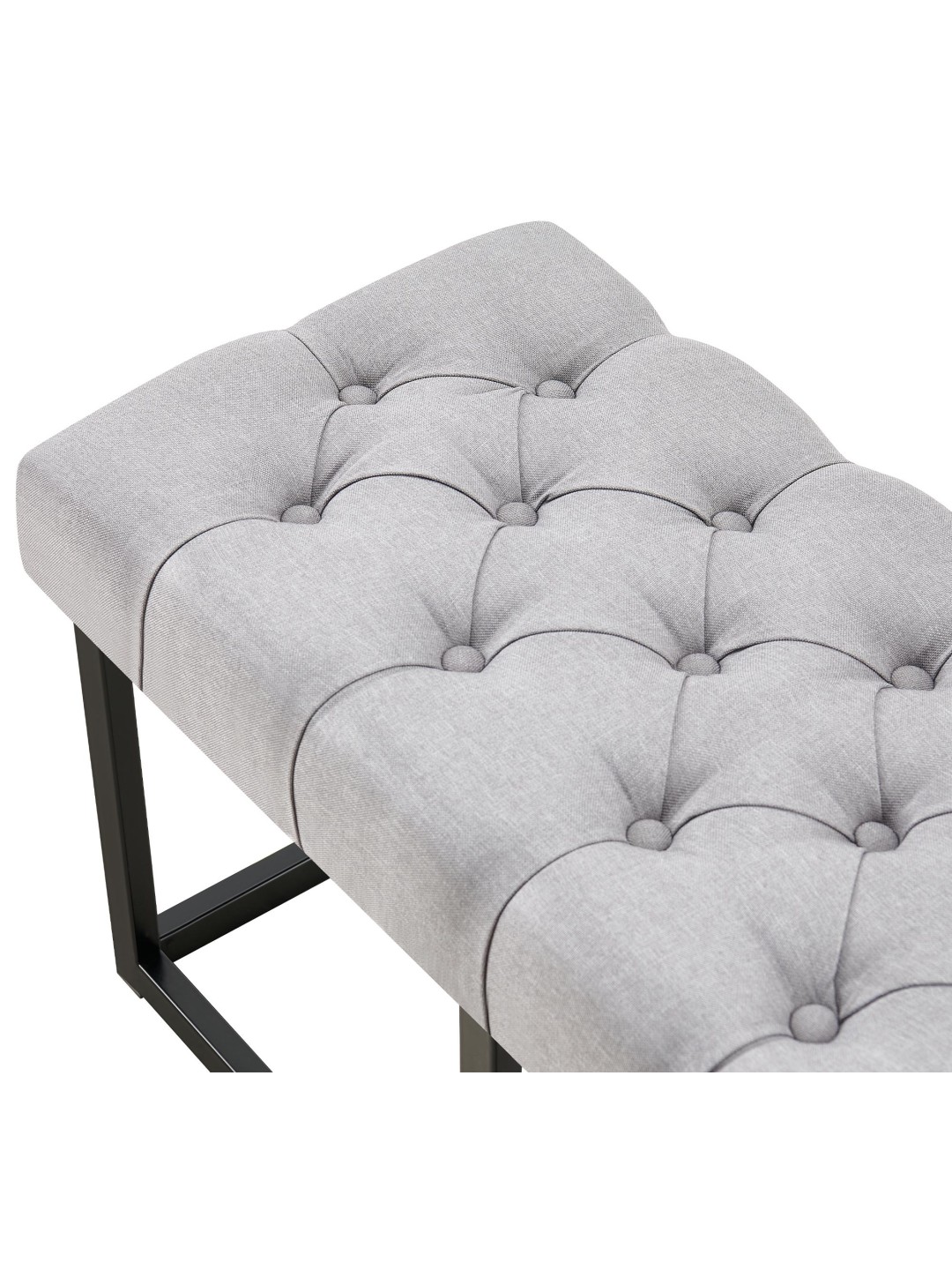 O banco tem uma estrutura robusta feita de metal preto mate. As travessas tornam-no tão estável que pode ser carregado com segurança com até 150 kg. Pisos sensíveis não são danificados graças aos protetores de piso.