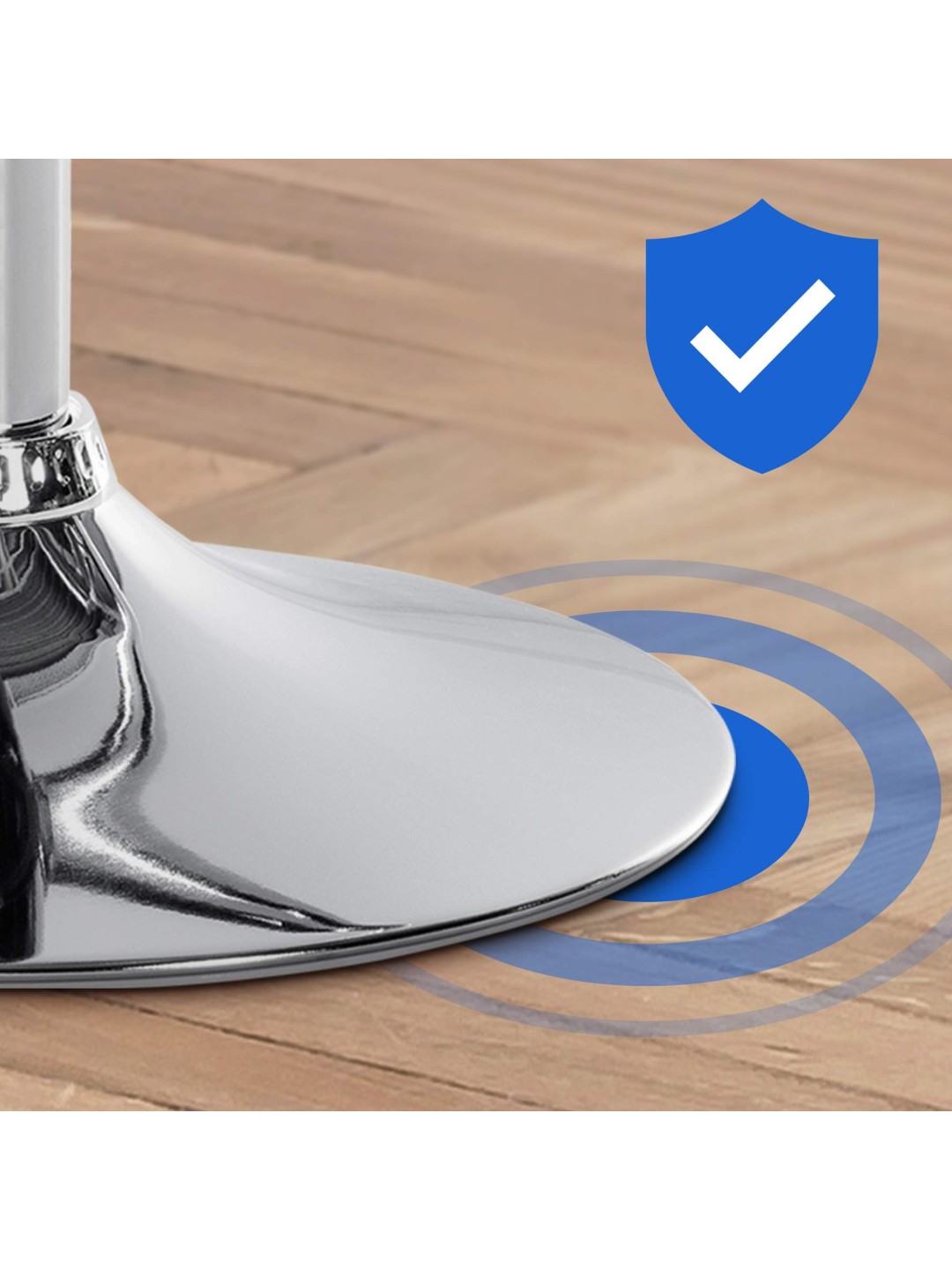 A estrutura é feita de metal resistente e garante um suporte seguro. Os protetores de piso sob a estrutura metálica evitam danos a pisos sensíveis.
