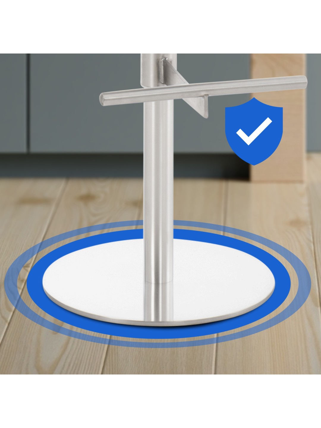 O apoio para os pés integrado oferece conforto adicional ao sentar. Por fim, a cadeira do bar está equipada com protetores de piso para que até superfícies sensíveis sejam protegidas.