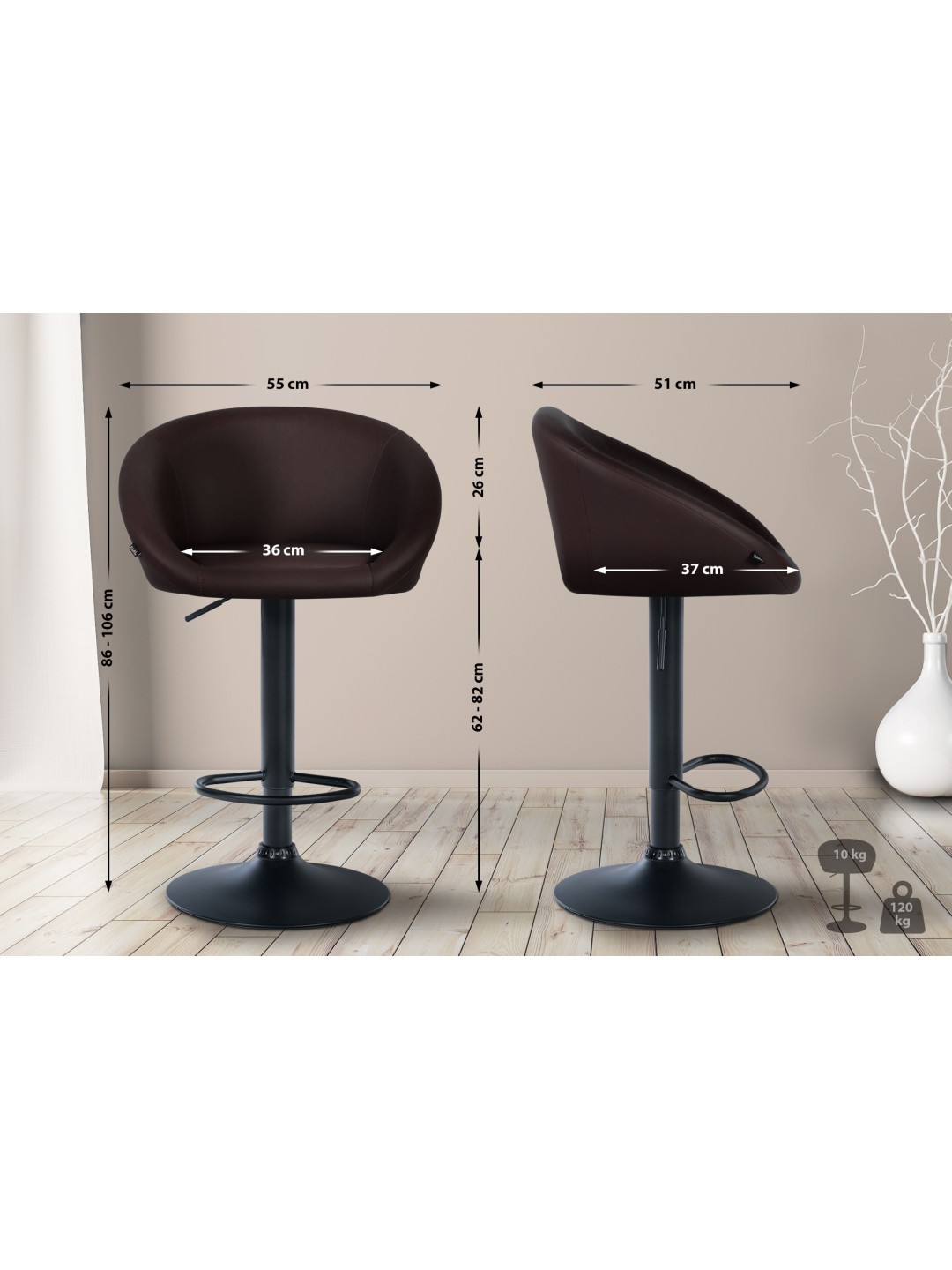 Este banco de bar é caracterizado por seu design atemporal. O assento acolchoado de alta qualidade proporciona conforto adicional graças aos apoios laterais resistentes e torna esta cadeira de bar quase uma pequena poltrona. A fina capa de couro sintético feita 100% poliuretano é fácil de limpar. A estrutura é feita de metal preto ou branco e, portanto, oferece máxima estabilidade. O banco de bar é continuamente ajustável em altura usando um elevador a gás e o assento pode ser girado 360°.