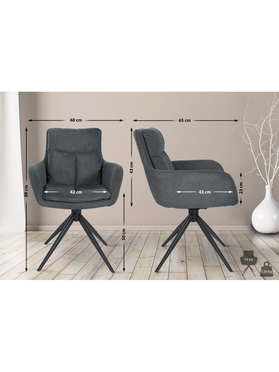Cadeira de jantar Vilas em tecido, cinza escuro
