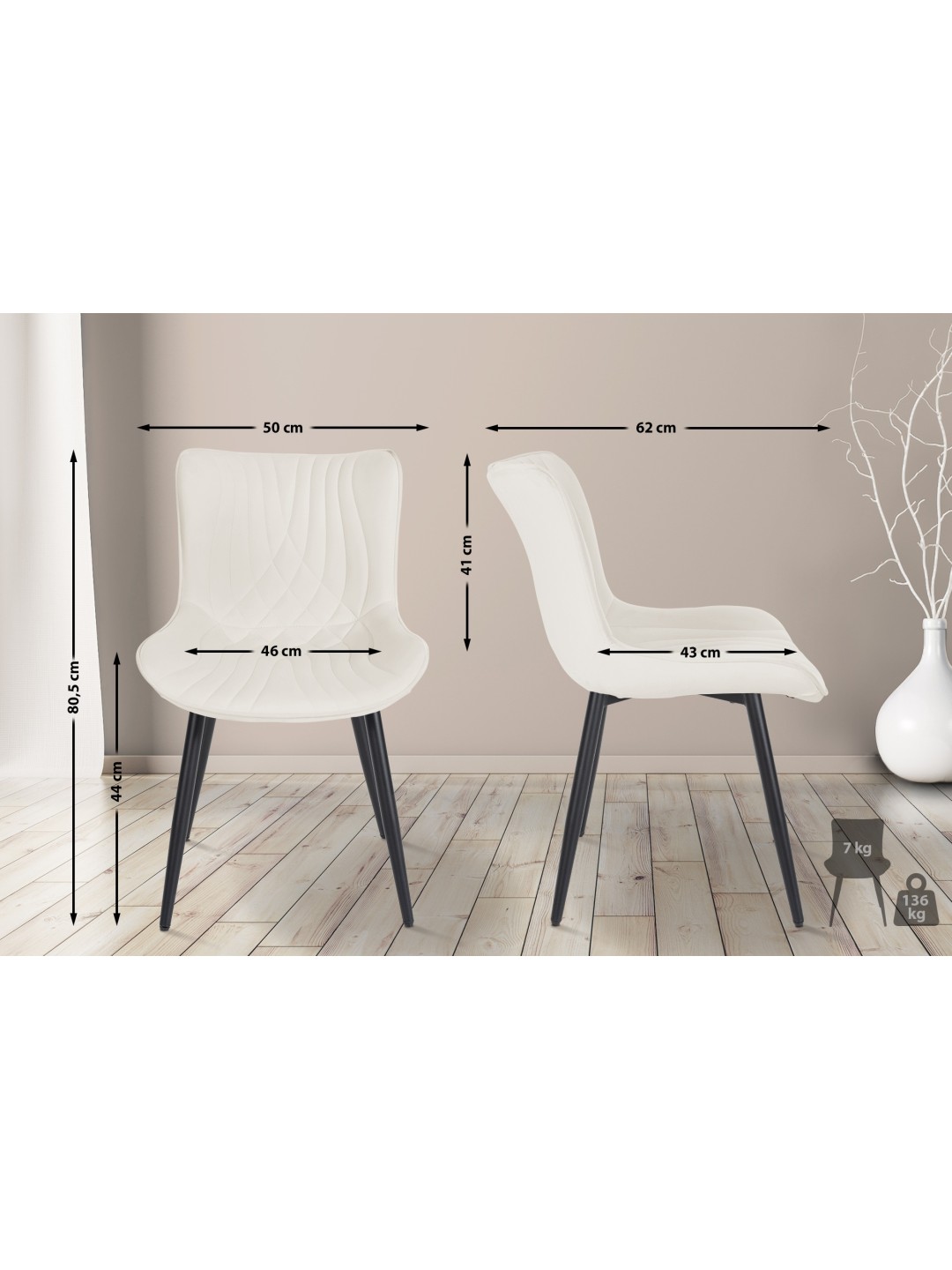 Área de assento (L x P): 46 x 43 cm