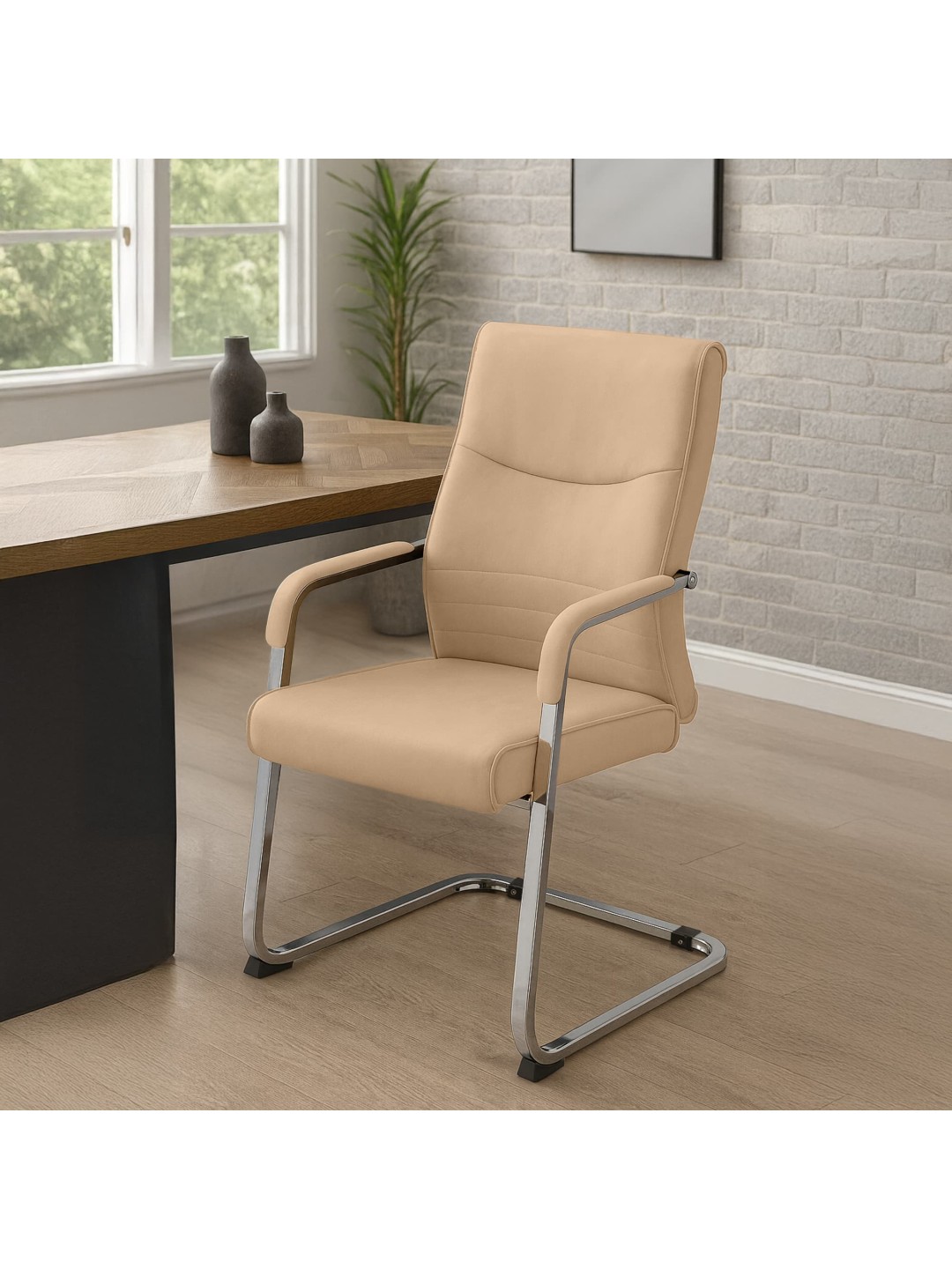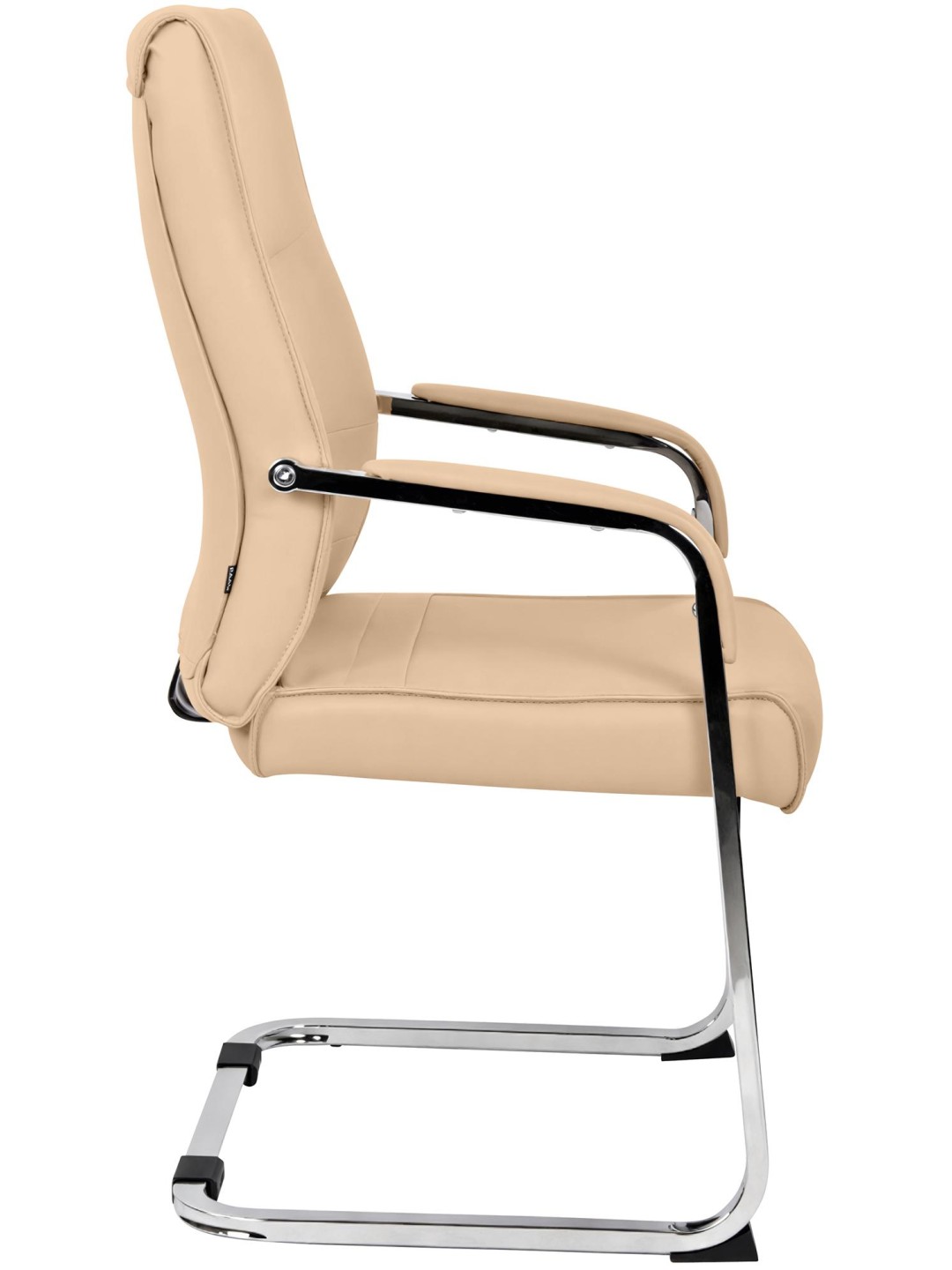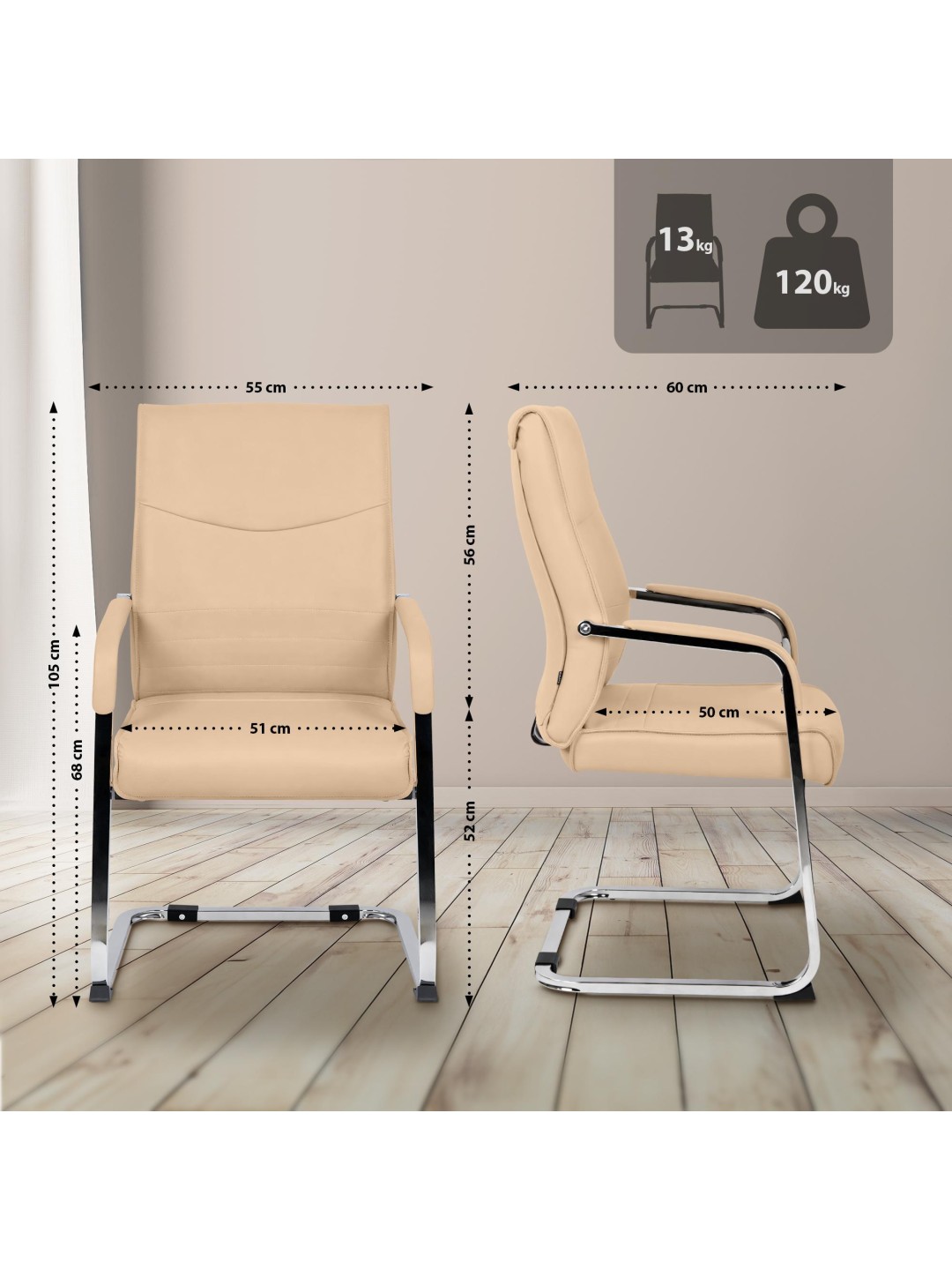 A estrutura cantilever estável feita de aço cromado proporciona estabilidade confiável. Opcionalmente, capas de couro artificial de fácil manutenção ou tecido durável garantem uma aparência de alta qualidade e um toque agradável. Os protetores de piso sob os corredores protegem pisos sensíveis e melhoram a aderência em superfícies lisas. Cada cadeira pode suportar até 120 kg, tornando-a ideal para reuniões e áreas de recepção muito utilizadas.