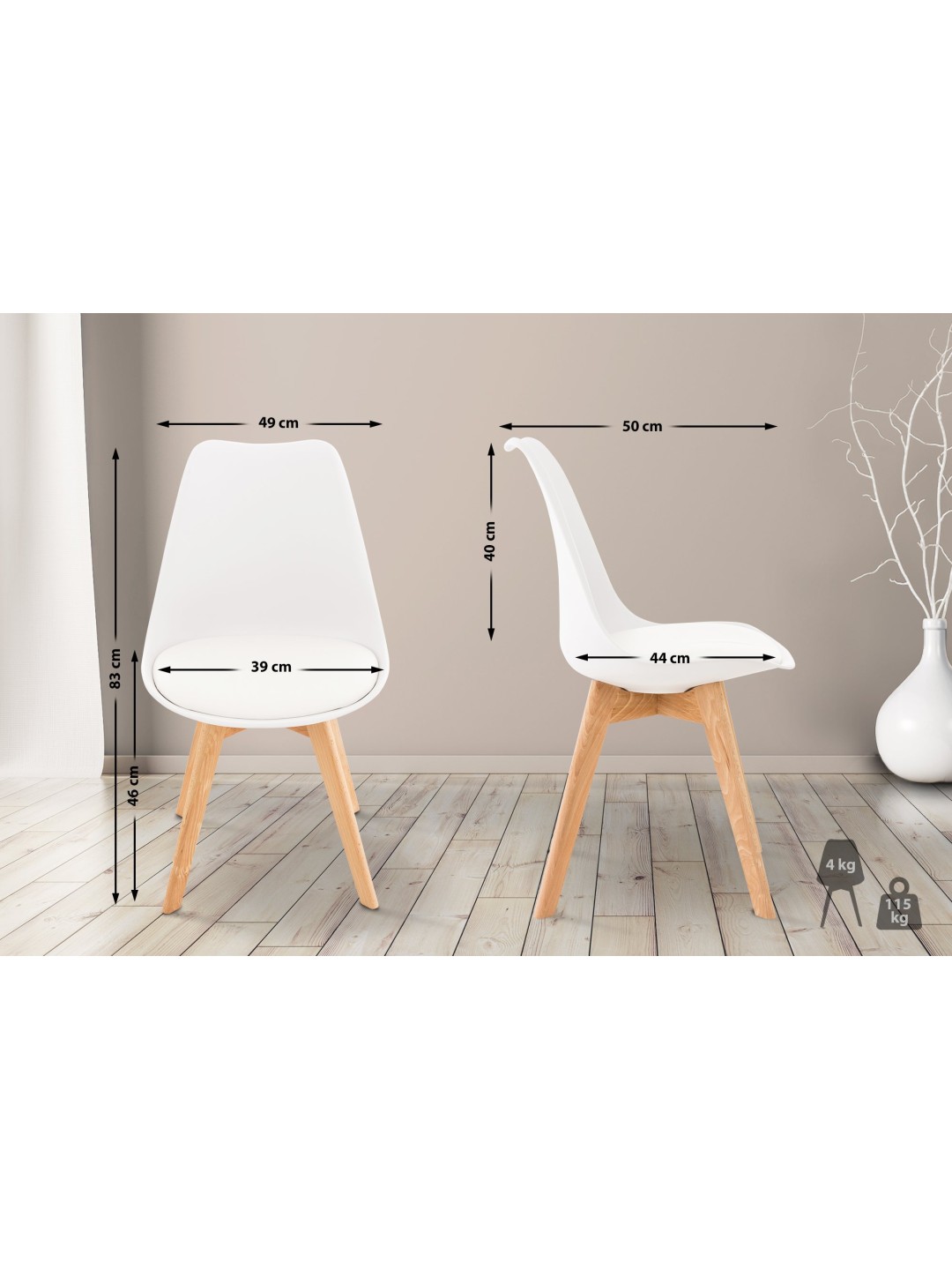 Conjunto de 4 cadeiras Linares, branco